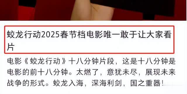 更值得一提的是,《蛟龙行动》在内容上的独特优势。作为春节档唯一一部现代题材的军事动作片,它直面当下现实,展现中国军人保家卫国的使命担当。在年底六代机试飞、076下水、西藏地震光速救援等现实背景下,影片传递的力量必然更能引起广大观众的共鸣。